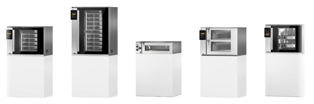Modulární systém pečení na jednotné platformě. Kombinace několika typů pecí s množstvím příslušenství je připravena přizpůsobit se potřebám jakéhokoliv provozu.